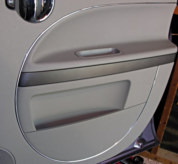 1/8" chrome molding added to dress up interior door panels. Purchased at Pep Boys. One roll of 20' will do all four doors (with about 3 inches to spare).