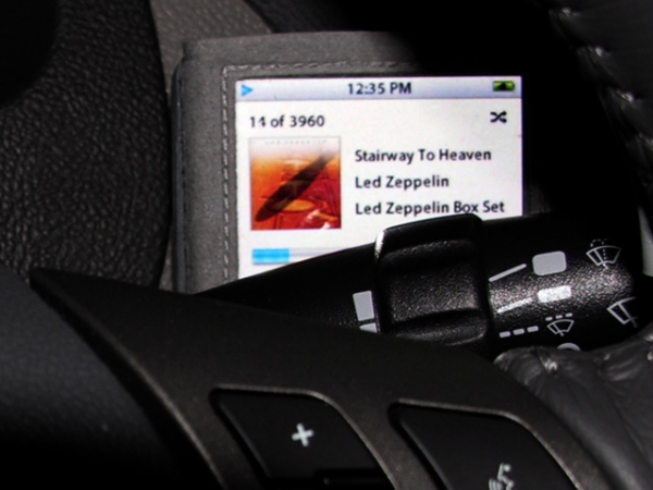 The picture just above is the driver's viewpoint of the screen. This was the best location that wasn't very visible to the outside, let me see the iPod screen with my eyes still on the road AND let me access the iPod controls. It looks like the scroll wheel is blocked, but it isn't.