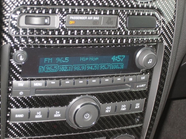 Leather-wrapped steering wheel with redundant audio controls and leather-wrapped shift knob