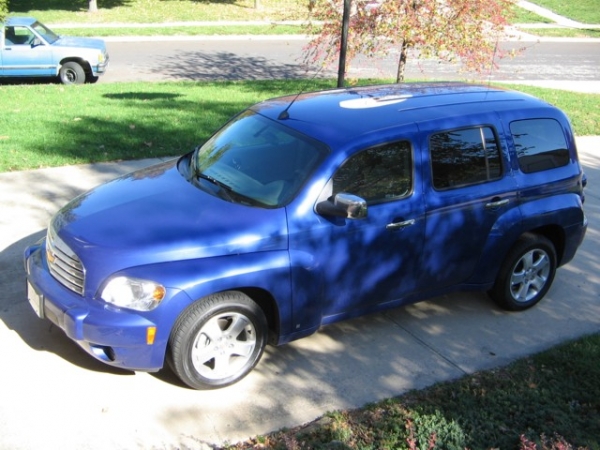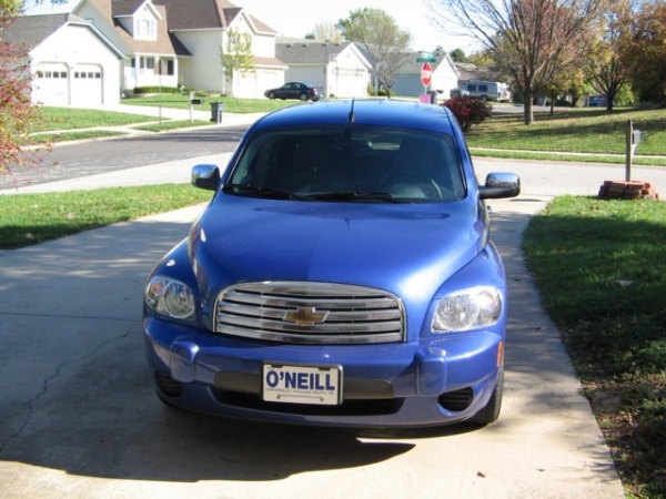 Well here is my new 2008 HHR in Blue Flash Metallic. 2.2L with the panel option. Within 1 hr from taking the photos I had all the emblems off of it. hehehe Hate stickers.