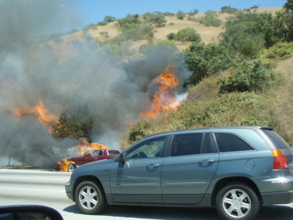 Here is another day for the SoCal summertime. This is just north of lambert on the 57 freeway in Orange County yesterday. I will try ang get picture of the arftermath when I go back there next week. I think it took out about 10-15 acres.