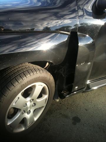 The wife and I were sitting at a restaurant talking about having the car repainted. Just then a 1 ton Dodge truck rolled across the parking lot (with no driver in it) into the side of my car. It pushed the HHR 3 feet sideways. the drivers door on my car still opened and closed. The car still drove too. Need less to say it got repainted.
