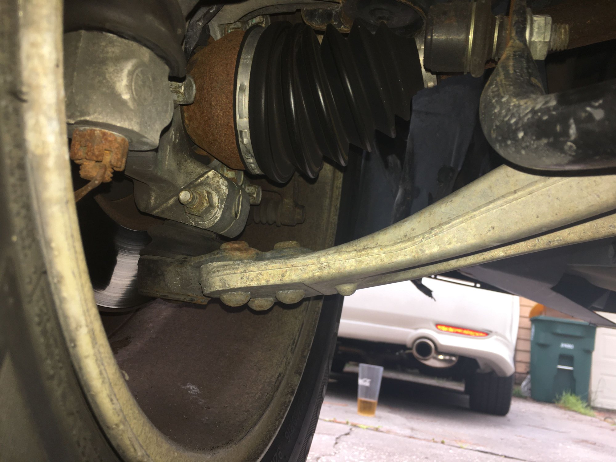 My girlfriend has a 2006 HHR and it has an occasional loud clunk while driving and sometimes over bumps. I have read a few threads on here about the nightmare that is the front end clunk and decided the check out the suspension. I grabbed the front bar and endlinks and pushed and tugged and didn’t hear any noise. Upon inspection some of these bushings on the lower arms and what not seem suspect, any input? Also I’m not sure what thE name for the part is below the CV axle that also had a small rubber boot on it, name please?