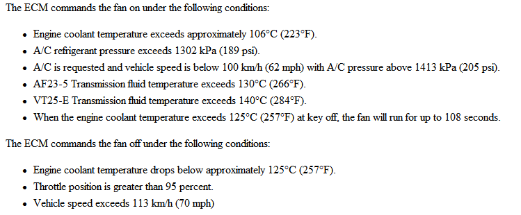 I drove the car today and the info on the dash stated the coolant was at 215 and the fan still did not kick on.