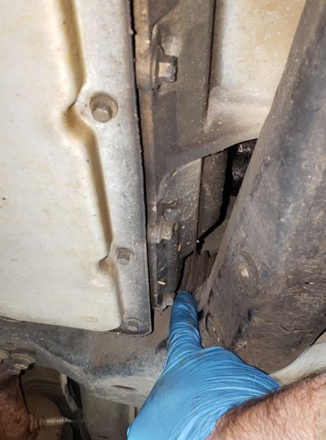 Another question. I have been reading where others have done this repair by dropping the cradle (while supporting the motor) just to get enough room to get to the solenoids. I thought the whole reason for this was because there was not enough room between the cradle and the transmission cover bolts. From what I can see on mine is there seems to be enough room to get all the bolts out. The one that is the closest is the one on the bottom corner closest to the firewall. It would be great if I did not have to drop the cradle and I could remove the cover. Unless the bolt is really long, I think I should have enough room to do it. I made a picture from underneath of the bolt in question. Does this look like I have enough room or is this the problem that everyone else has doing this job? The bolt head is just to the left of my finger.