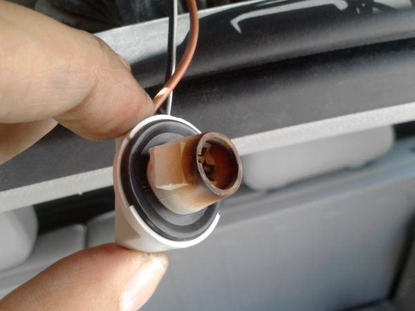 Well, today I was waiting to order food on a McDonalds auto service. I noticed my rear glass a little dirty, then I activated the rear squirter. Then, I saw how the water was dropping inside the car and suddenly a little smoke cloud! I parked and see if it begin to burn, but nothing happened. I drove to my house, got the tools, disassembled the rear light, and what I found...