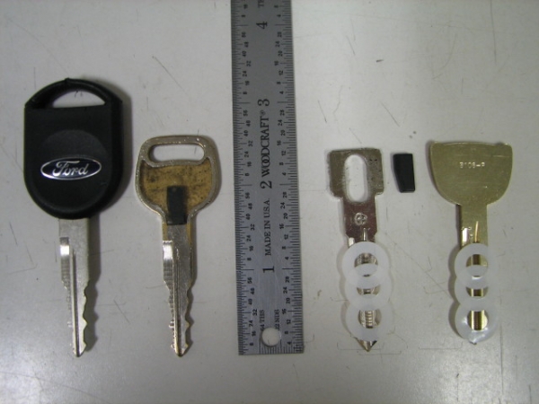 You can take this a step further if you like. In the picture below on the left of the rule is an old F O R D factory key and what I did to make it smaller for the pocket. On the right of the rule is the factory HHR key and “chip” with all the plastic removed. Last is another key(valet) for size with its plastic removed as well. I haven’t completed this project yet.