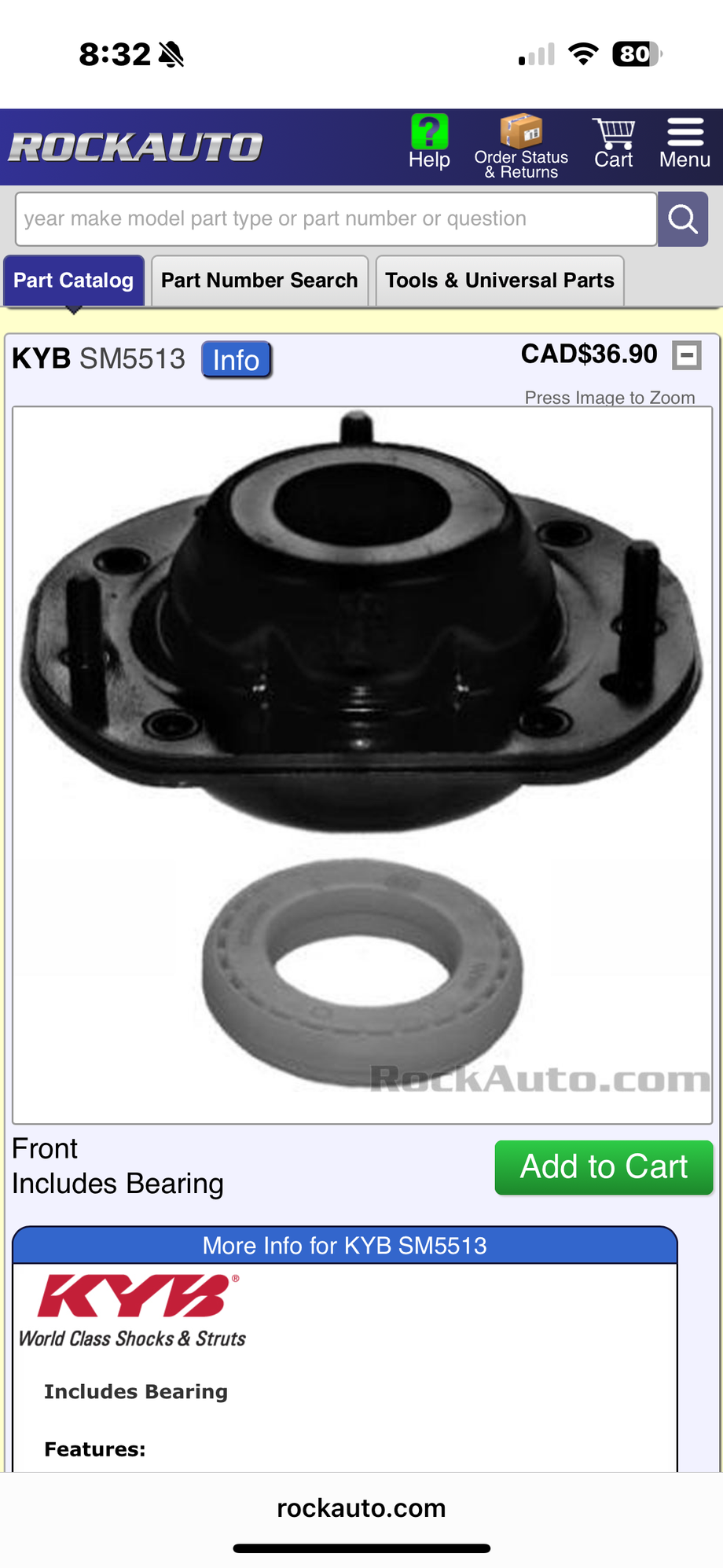 I’ve rebuilt with KYB struts and top plate bearing. I recommend you replace the rear shocks also with KYB
