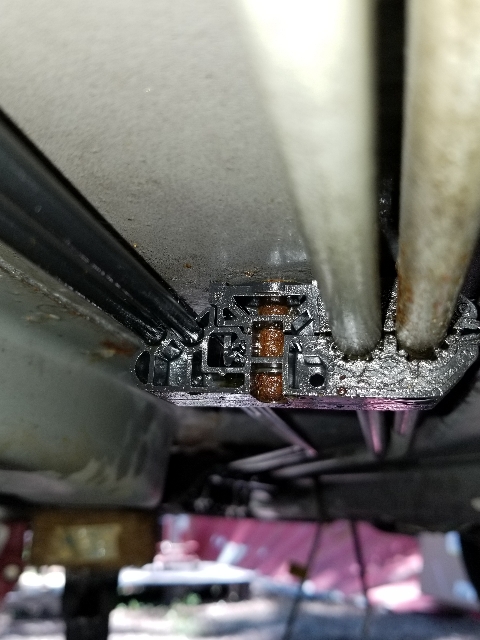 I just jacked mine up to look. There are no threads in the bottom portion of the bolt. In your picture, just to the left of the center portion of the bolt, are the interlocking tabs.
