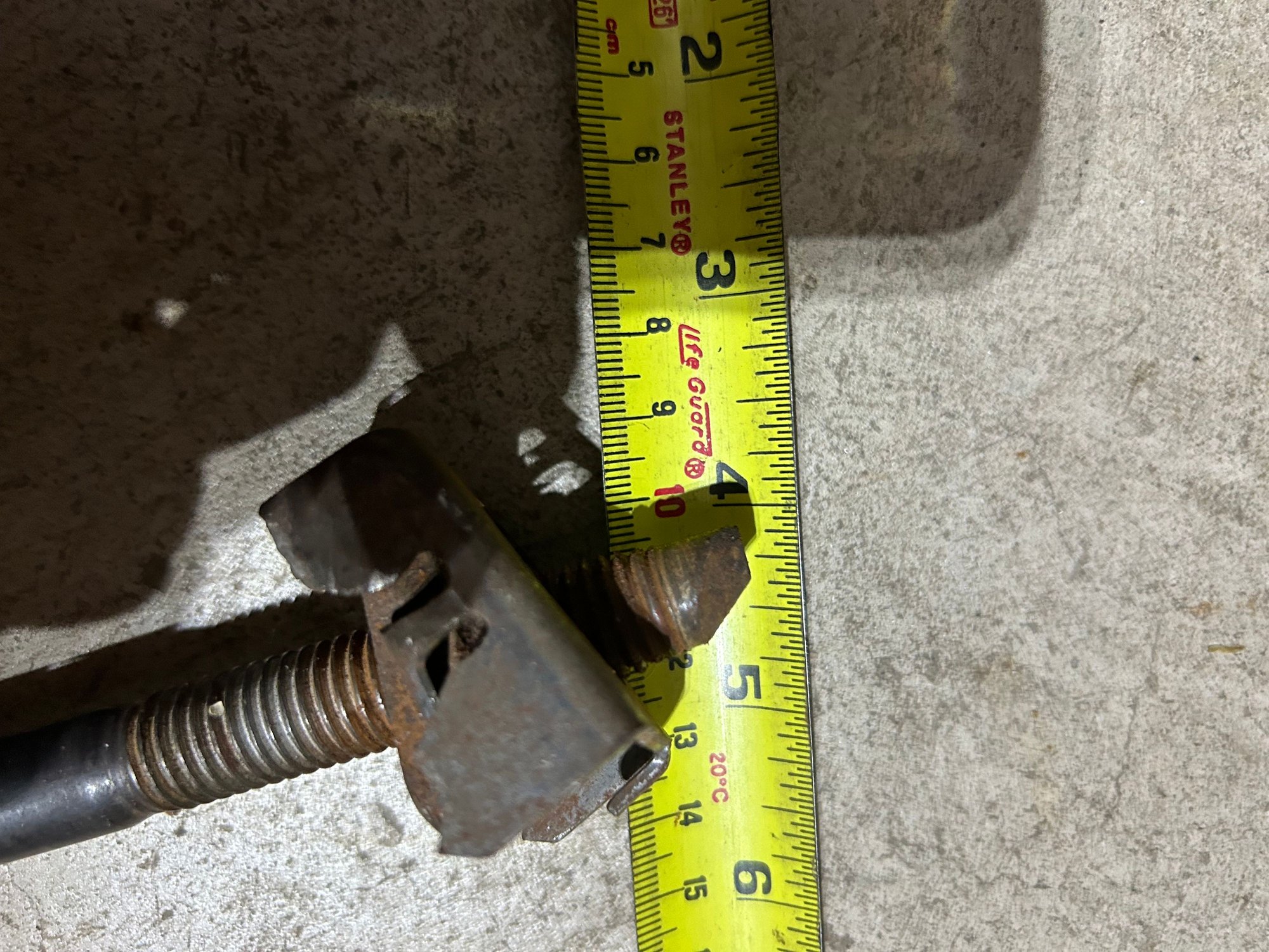 OEM bolt with cage and cage nut The bolt is 5 “ or 13 CM long You can see here the bolt has a self cleaning tip to ease installation. I use anti seize in the shank and the threads