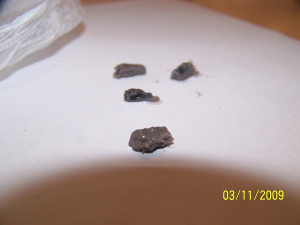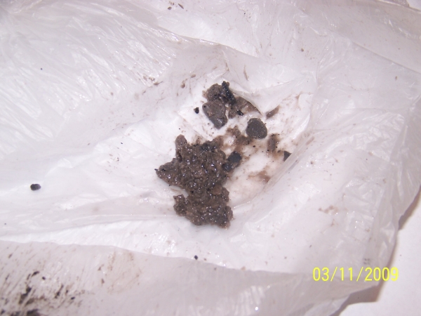 Here is sum of the "gunk" that was inside my radiator.... to me, upon further inspection.. it looks more like a mashed up gasket, there are even big junks of gasket like material mixed in, its very brittle so I'm assuming its not plastic.