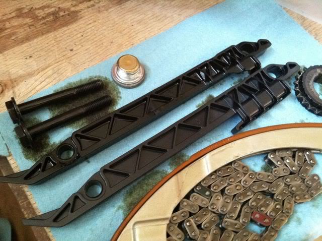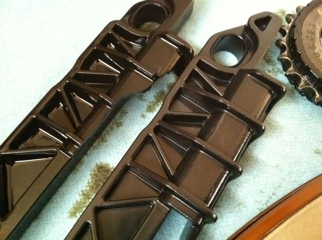 Here are some photos of the chain guide that I found was broken. The pieces are most likely in my oil pan right now.