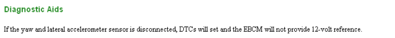 Could be a wire or connection. The yaw sensor connects to the EBCM. The connector on the EBCM is a suspect. You might check the connector to the SCM, it is under the console behind the shift lever.