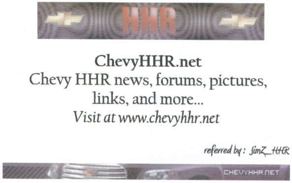I printed my own using My Business Cards. I've seen several HHR's here in San Diego, but not many on members listed here... plan on passing them out whenever is see one in a parking lot.