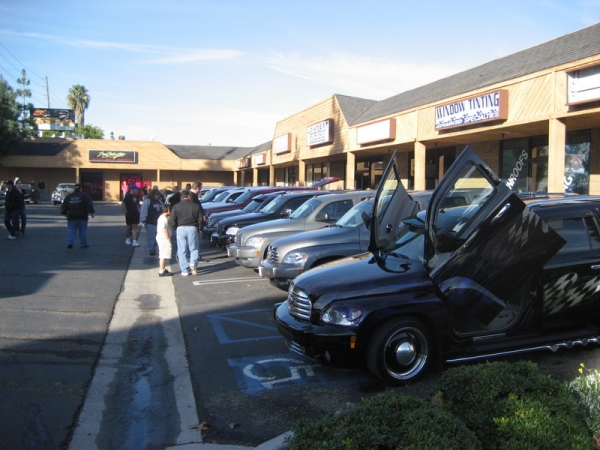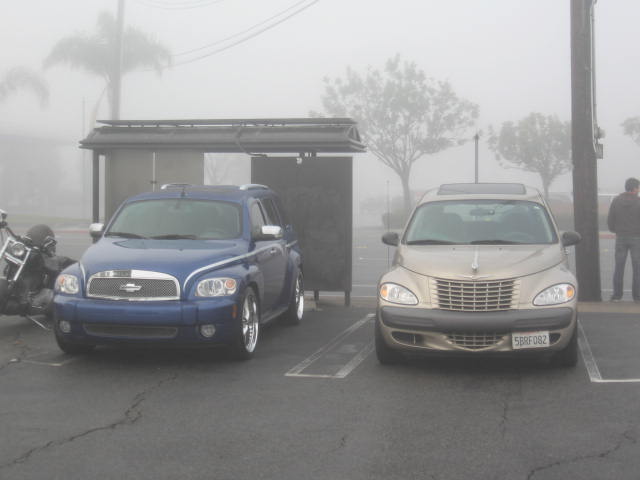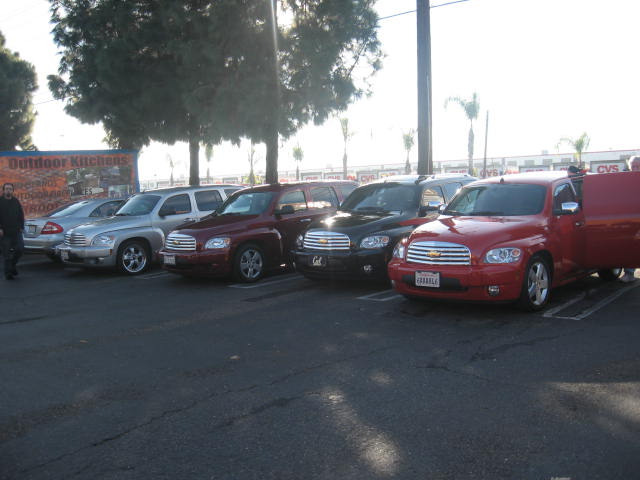 I could have *sworn* I took a pic of both sides of the parked HHR's at Boyd's, but alas, found I only took a pic of the side my Blackie was on (4 cars). Could someone please post their pix from there? Also, Sindy, could you please post the one your husband took when he popped up out of the sunroof? I hope that one came out!