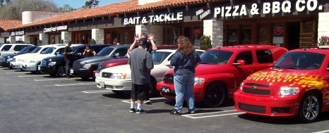 Tracy (IBM), Joe (white), Don (white/SS wheels), Ang (black/pink pins), Daryl (DSM), Jon (cardinal red/black chrome), Kris (VR AA5), Tom (VR SS with the awesome flames-pix do not do it justice), Lauren (Sport Red), Tony (black SS-AA5), Greg (red SS), Todd (black-the ever gorgeous UMA), Tim (our favorite 2-tone panel) and hidden was Charles (silver SS) and James (silver panel).