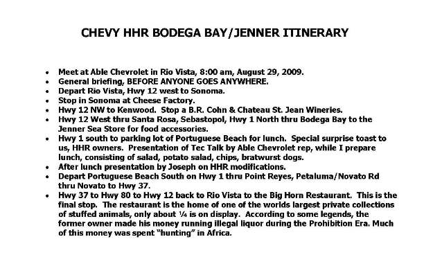 Hi all, Joseph and Rachel (The folks who set up the Monterey Run last year) have come up with another fun run to do in Northern California. Sorry this is such short notice. Joseph needs a head count for the lunch, so please sign up! This is open to everyone. Lets have some fun with other NorCalHHR club members. Invite some new HHR owners as well!