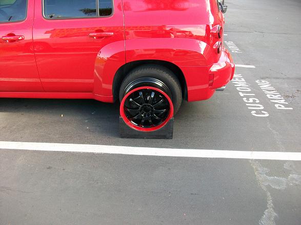 Kris and I just stopped into a wheel place today to kill some time. The guy looked at her car and said, "I have the perfect wheels for your HHR". She did it, and I am impressed. Todd (Uma)