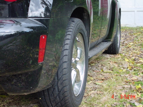 Excuse the dirt and gunk.... it's been raining....... Tires stuff the wheelwells pretty well and feel/handle great. Love the old school "Big Meats" look.