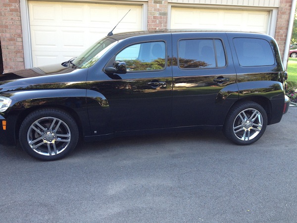 Thanks to forum member 2007HHRLT , I was able to get a set of 17" optional HHR wheel at a VERY reasonable price. I took my time with finding the extras, but finally got a new set of TPMS, after market chrome center caps, American Racing chrome lugs/locking nuts, and Continental Extreme Contact DW. My plan is to use these in the summer, then switch to the stock rims (equipped with exteme contact DWS) in the winter...Would hate to see what a brutal PA winter would do to these! This is my 3rd mod to the HHR (Black Chrome grill, Steering wheel radio controls).
