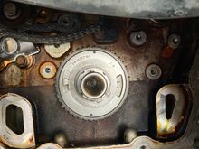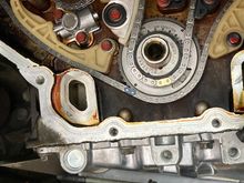 You can see at the upper left the exhaust balance, chain color link is in line with the mark, the same follows for the intake side. Crankshaft sprocket from what I read is supposed to be at the 12 o’clock position. I just have a gut feeling something isn’t right.