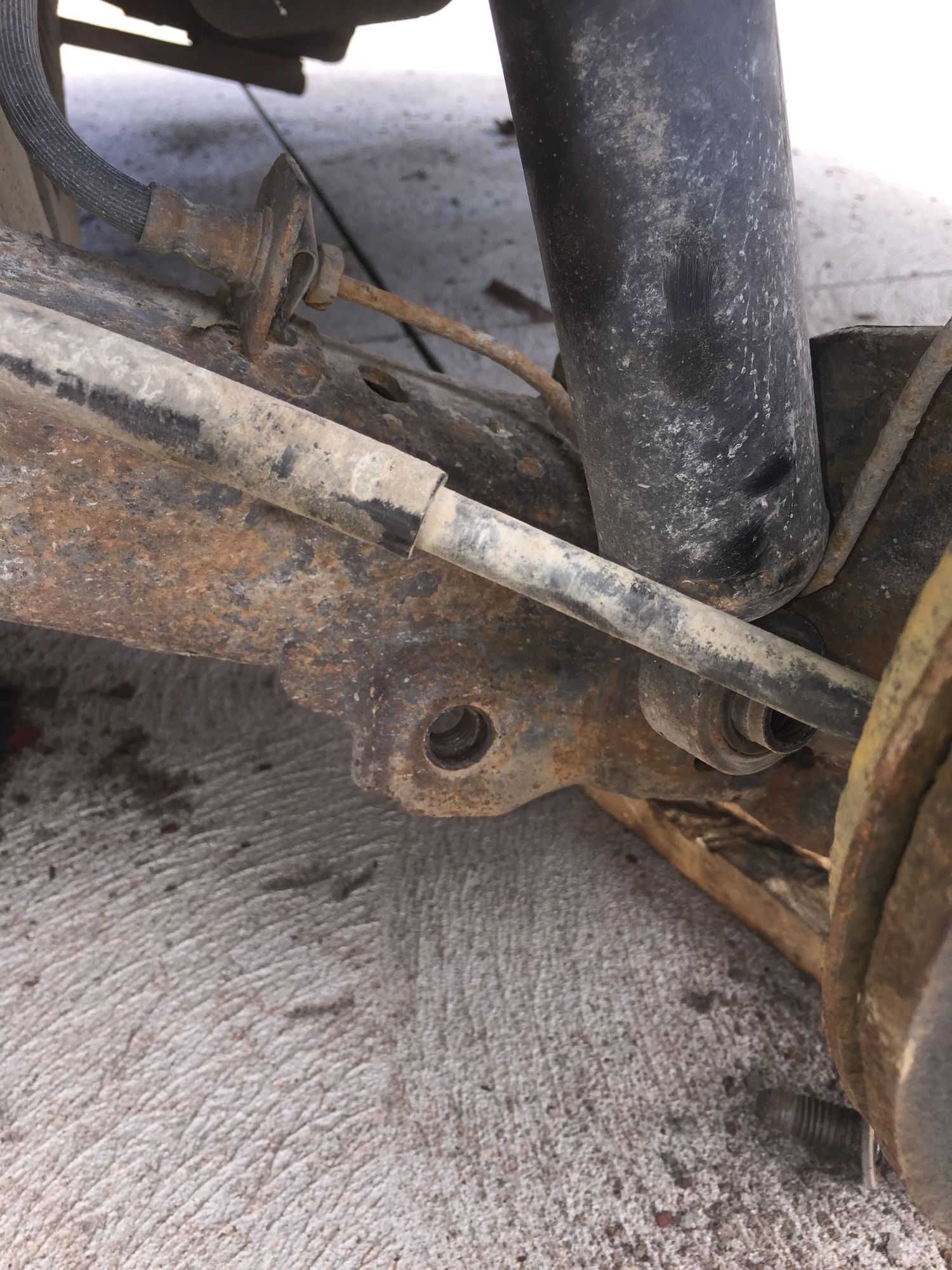 Lower shock bolt removed