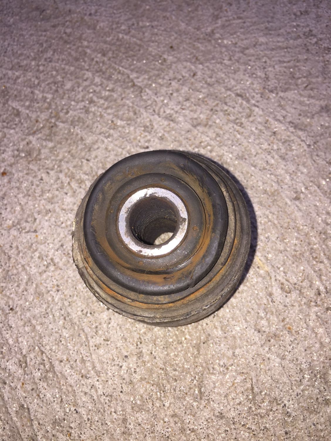 That same bushing, a little worn and loose in July 2018.
