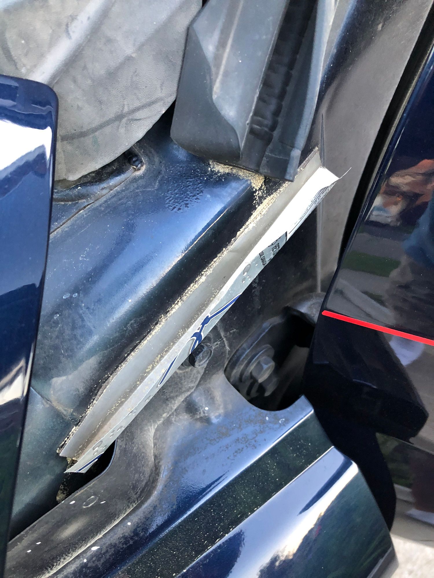 Here’s a better shot of the drivers side and the front of the trough, up here it keeps water from causing ice dams in the door hinge area and the wiring harness boot area.