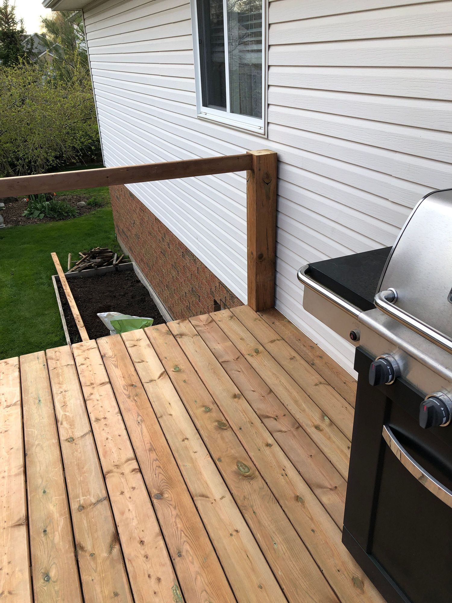 I put up a new railing, new 6x6 posts , go big or go home , right , the posts are to match our fence with 6x6 posts and 1 x 6 fence boards, I’ll finish the railing and privacy fence tomorrow