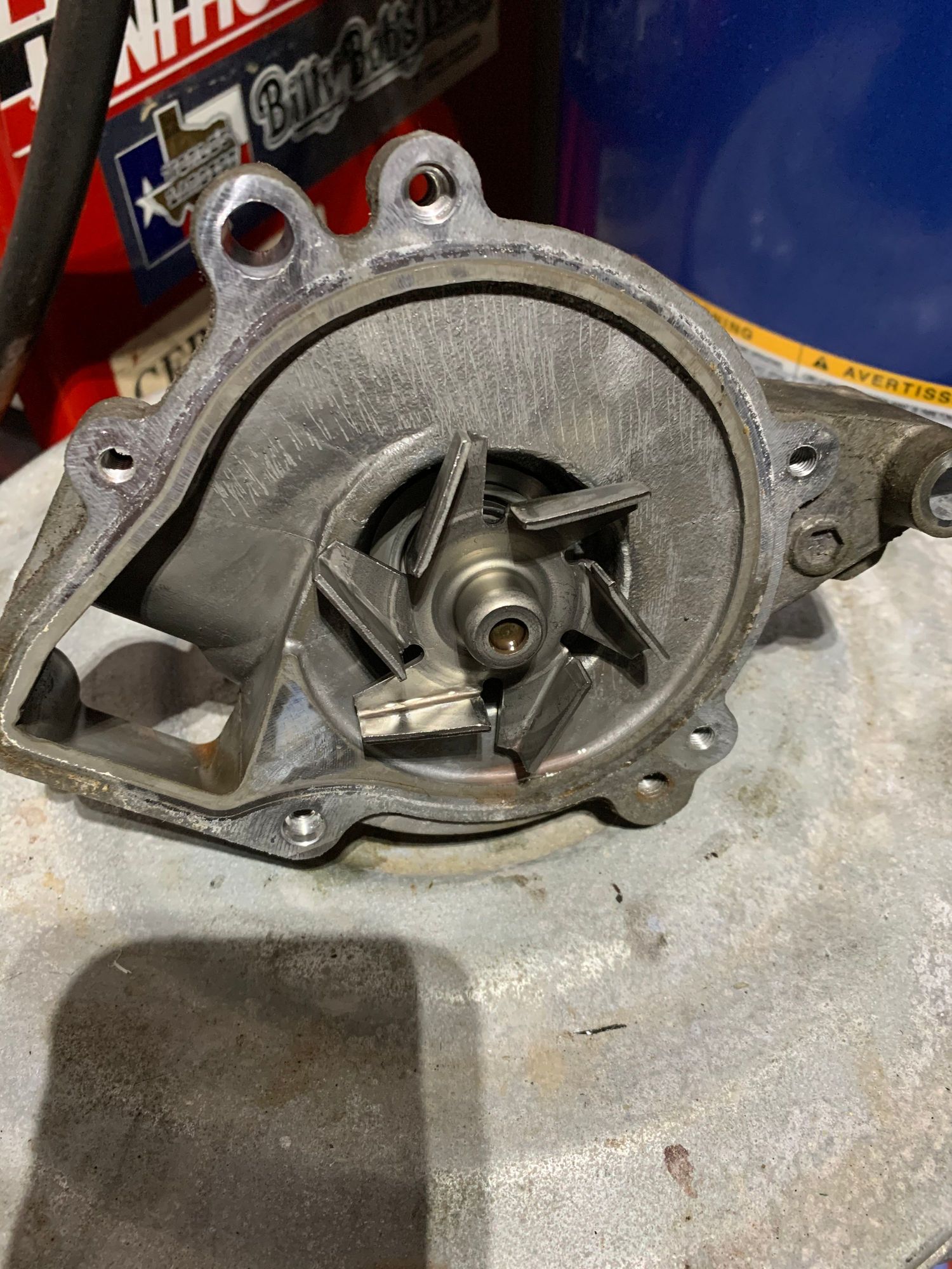 Old water pump , coolant side , note a touch of corrosion along the seal line , it was not long until a leak would have started