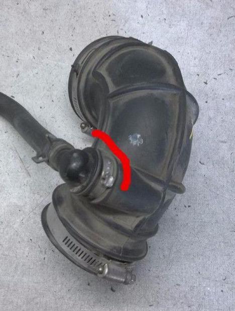 Look at this area of the elbow for oil, it can get sucked from the valve cover, the solution is to soak the valve cover in warm water and Dawn dish soak over night.