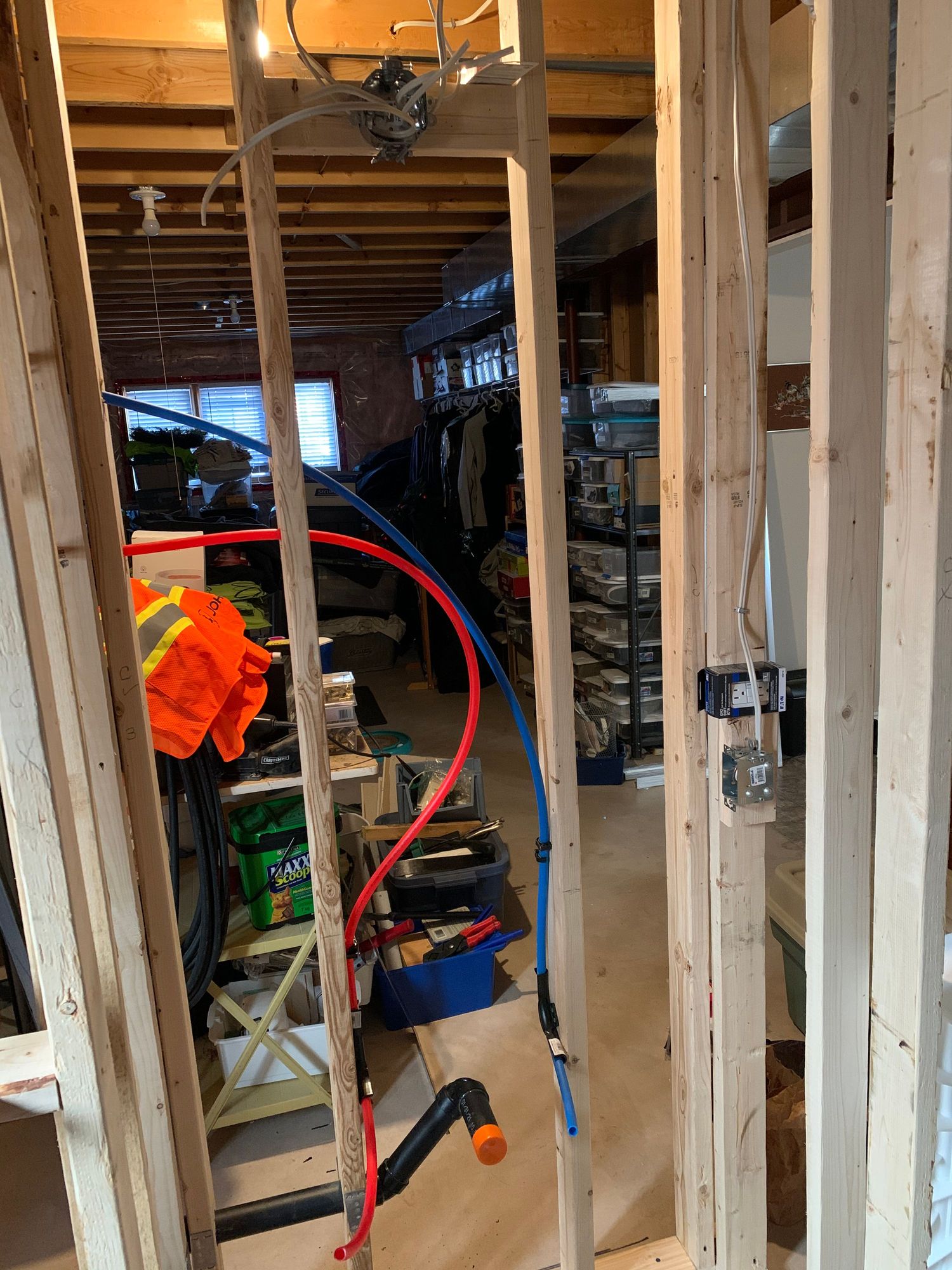 The drain is adjusted for height and the sink supply lines are ready for drywall, I still have to wire the lights and GFI receptacle