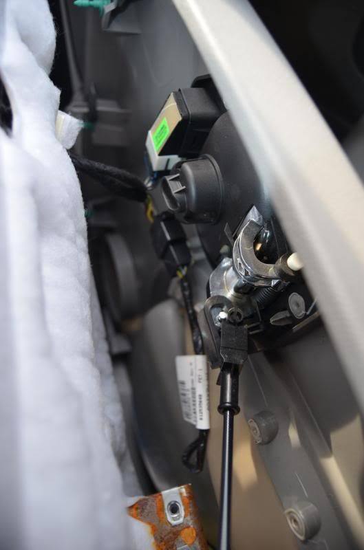 The cable connects here at the interior handle, most common place it breaks or isn’t reinstalled correctly