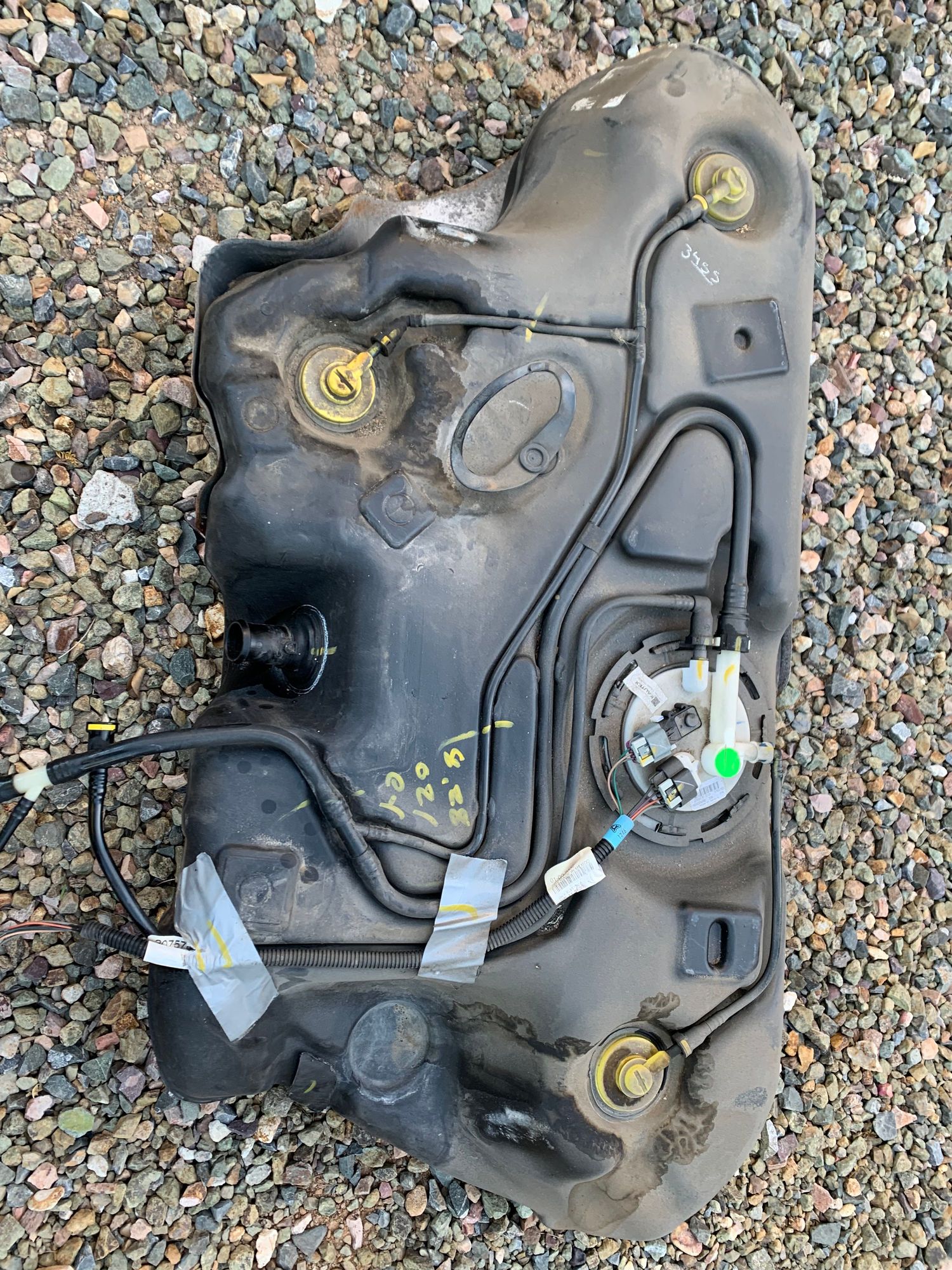In September, started smelling a strong gasoline odor inside the car when the tank was full. Ordered the vapor line assembly from Rock Auto and installed it today. This is what the top of the tank looked like before I cleaned it and installed the new vapor lines.