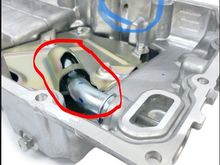 As you see here, there is a feeble attempt to use gravity to let the oil flow back into the valve cover.