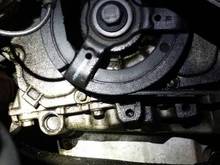 As you can see from fastsuv’s photo , with the engine cradle removed there’s room in the cage, however getting in there with the cradle in place, you have the rear transmission mount, steering rack and swaybar with brackets and bushings in the way. I’m able to reach in from the wheel well enough to insert that Allen wrench.